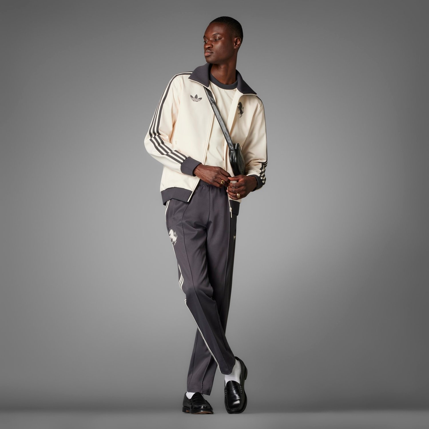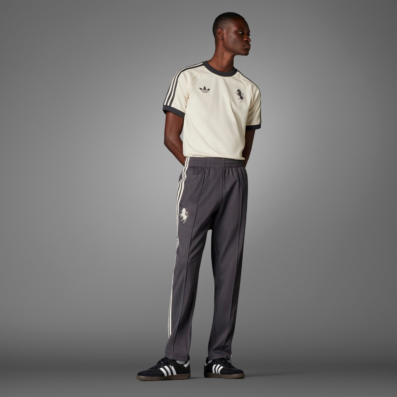 Introducing the Juventus Beckenbauer Track Pant, a modern nod to football culture wear. These man's slim-fit tracksuit pants, made with a sustainable blend of 52% cotton and 48% recycled PET, offer both comfort and eco-friendly style. Sporting the iconic Juventus Football Club crest and the classic three stripes, these trousers seamlessly blend archival inspiration with contemporary design for the football aficionado who values style in motion.